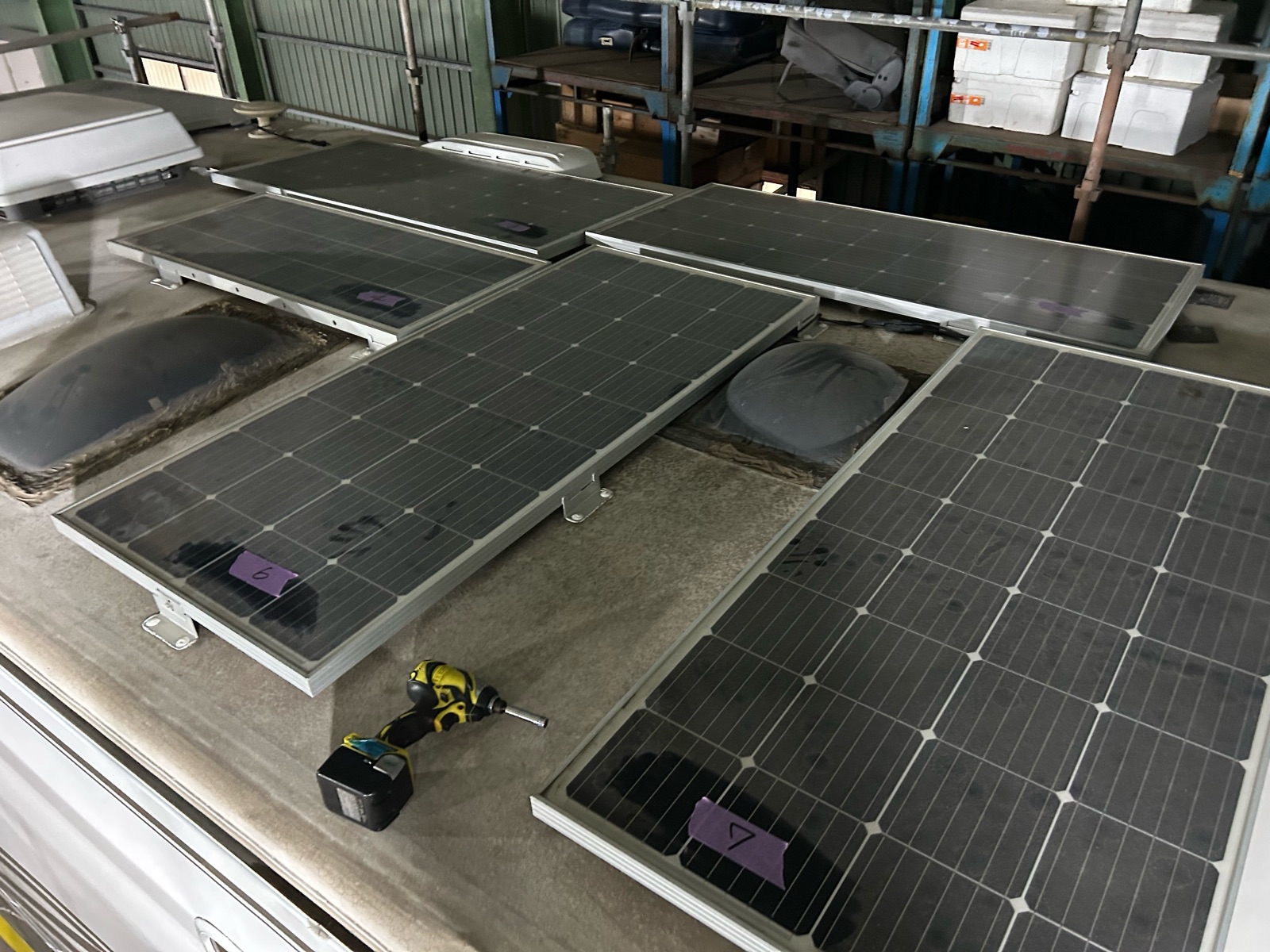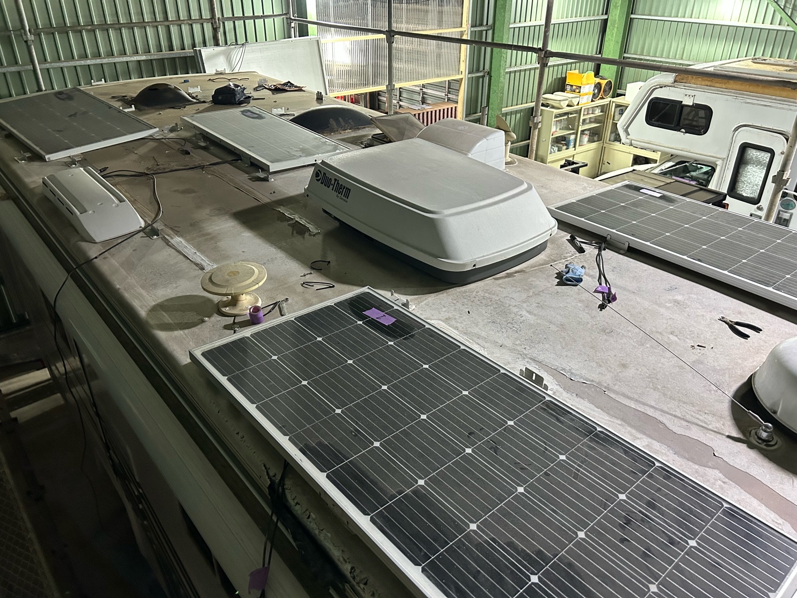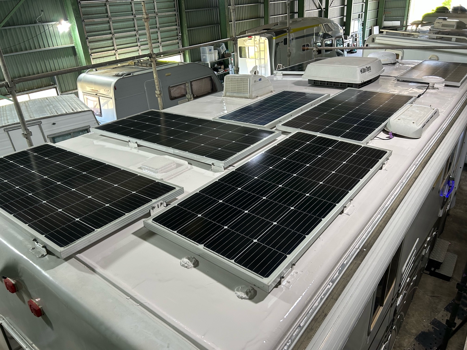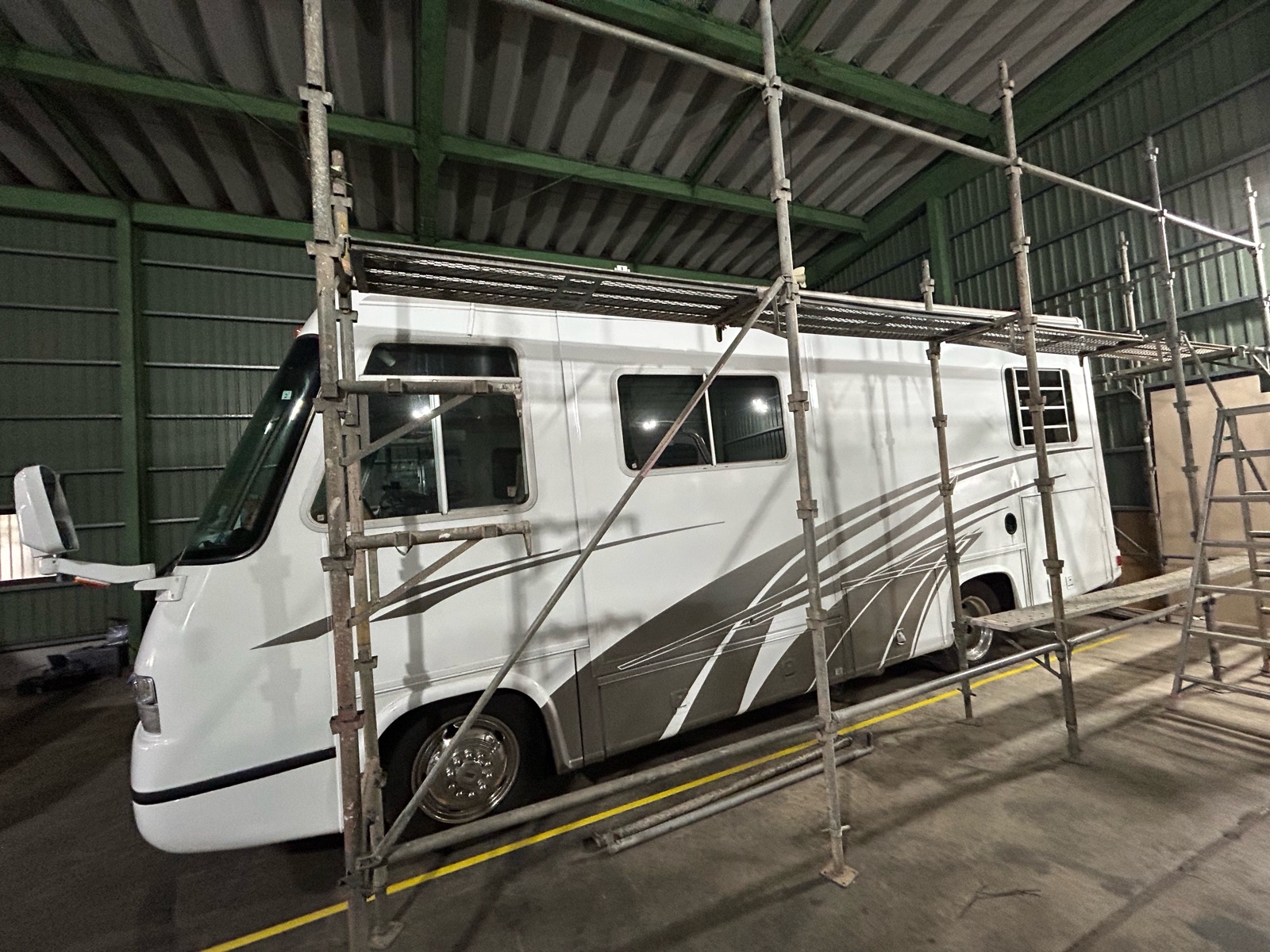 車体が大型なので仮設足場を組み施工です。