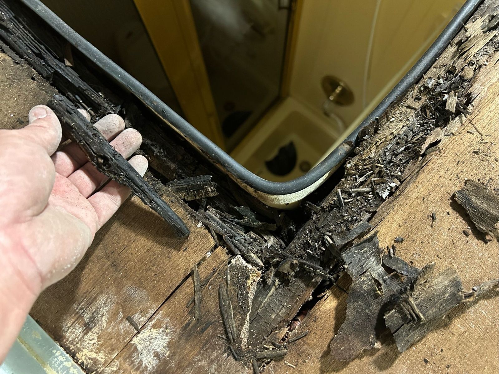シートを全面剥がし<乾燥>させ、所々下地材が腐っていたので交換補修、その後【当社オリジナル防水コーティング IT1123 施工】しました!
